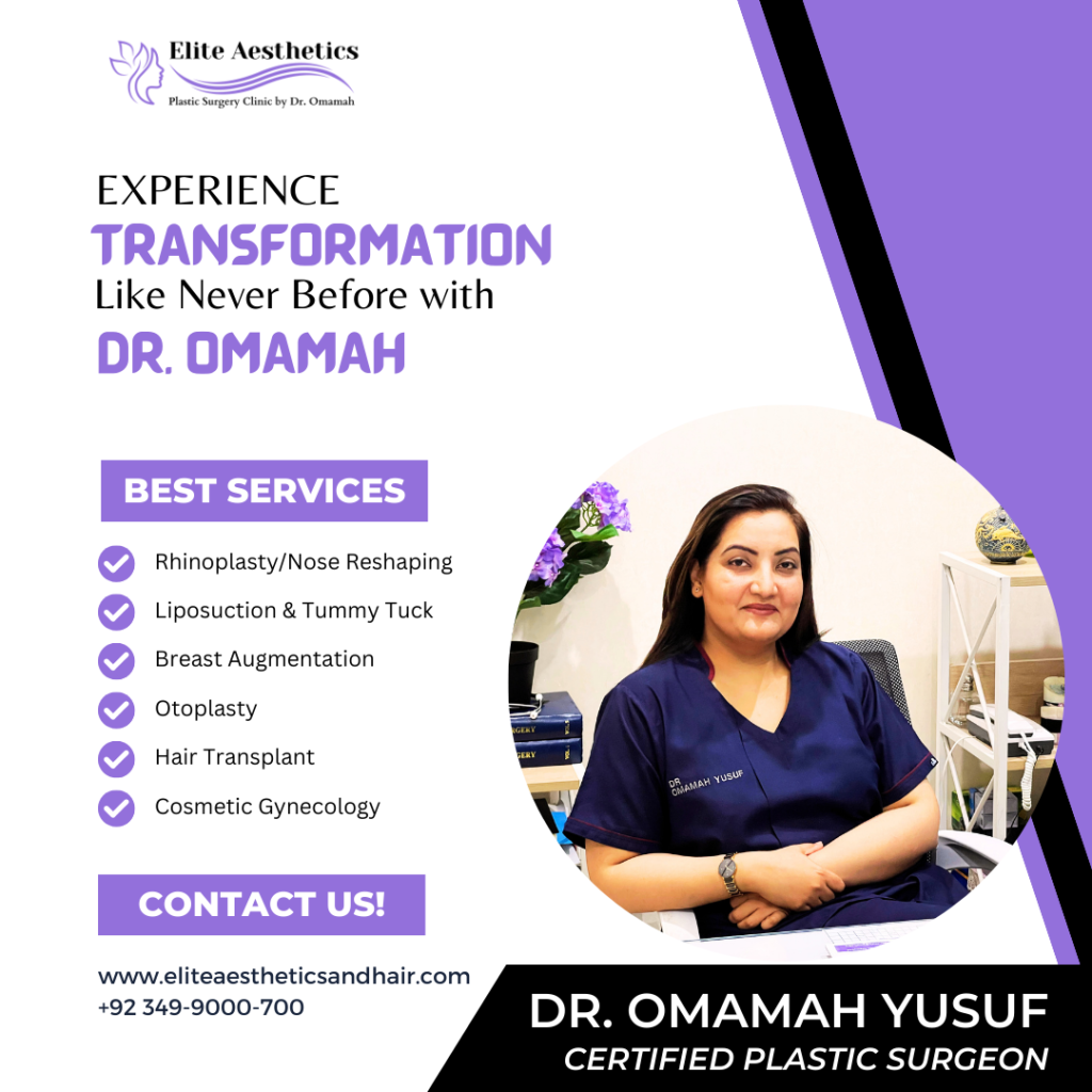 Known for her precision, aesthetic sense, and patient-centered approach, Dr. Omamah Yusuf combines advanced surgical expertise with an artistic eye to deliver natural, safe, and refined results across a wide range of procedures. Patients seeking experience, exceptional skill, and internationally recognized training can trust her commitment to excellence and high standards of care in Islamabad, Pakistan.